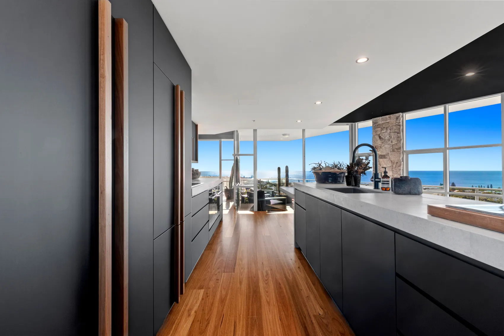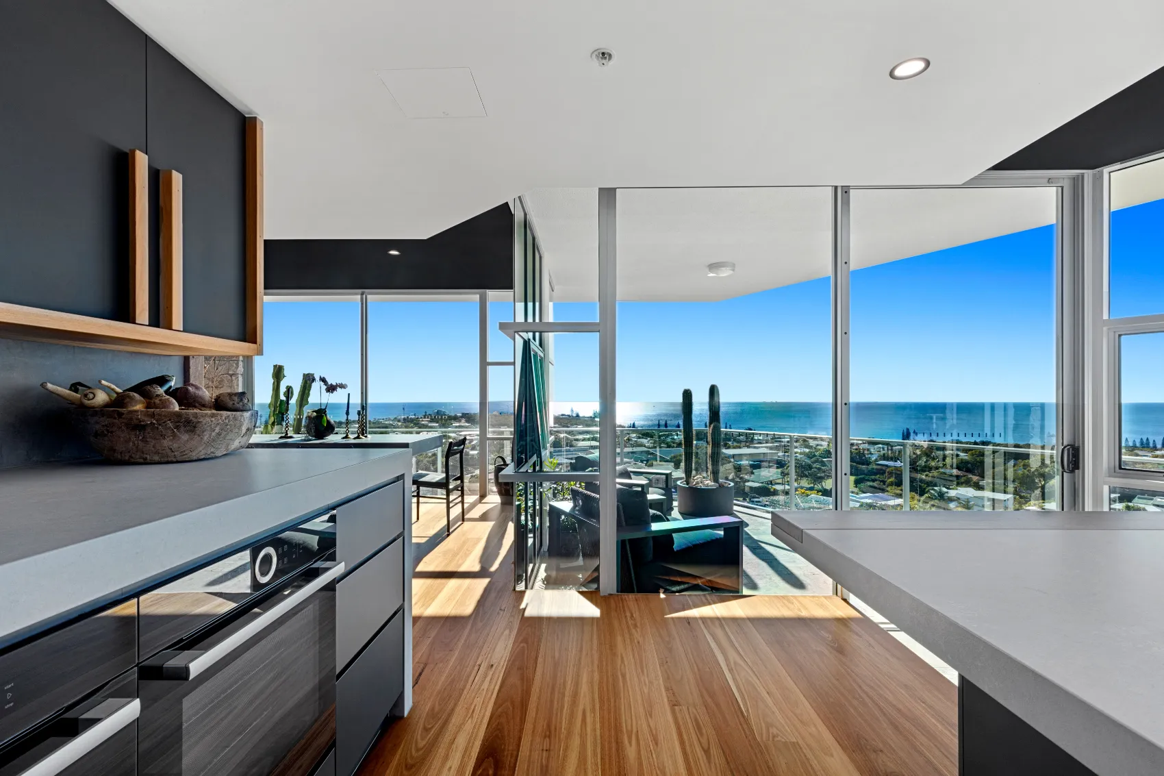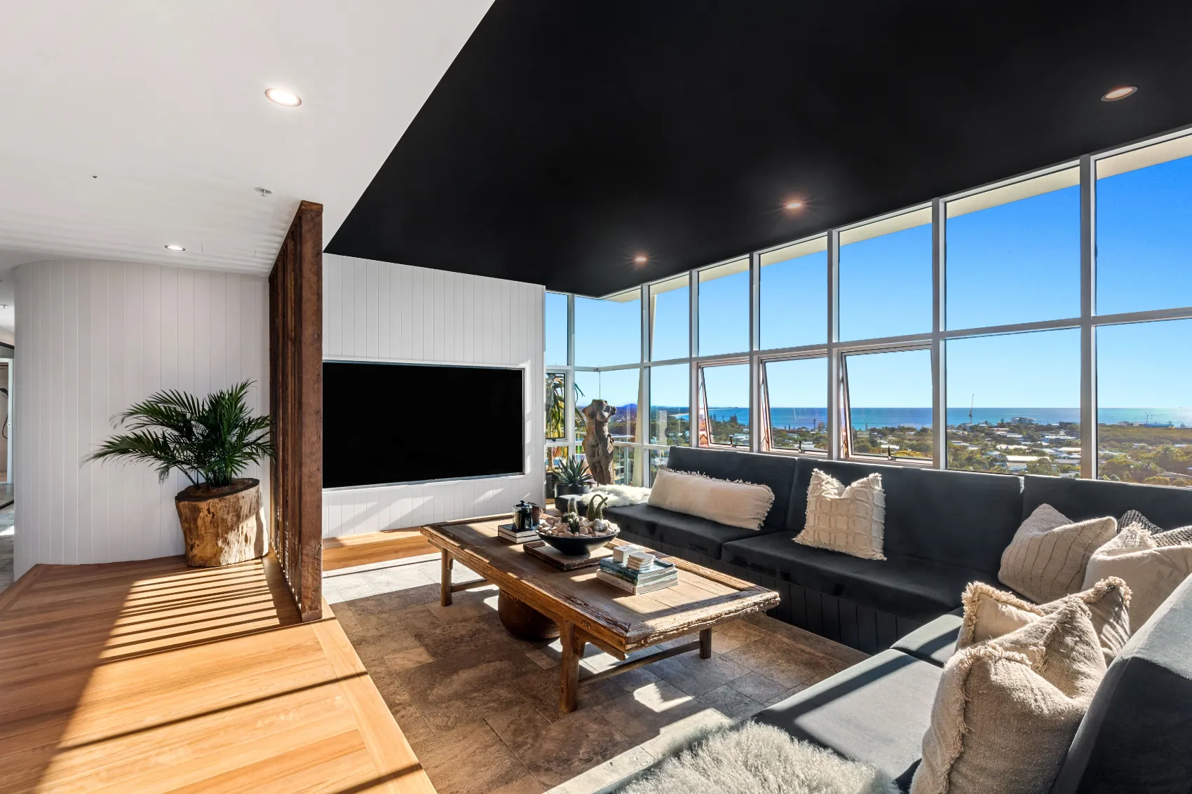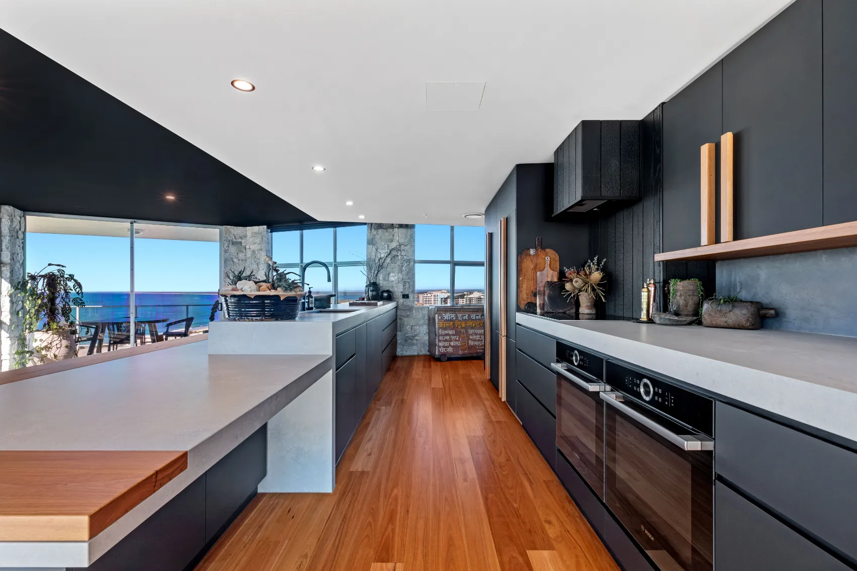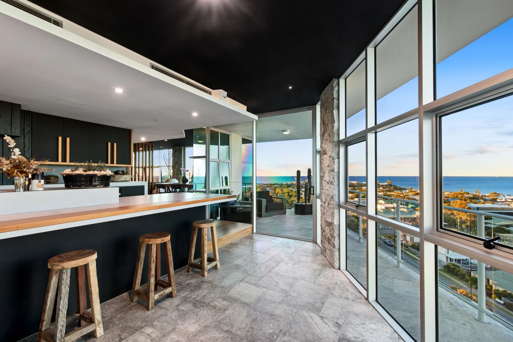An 11th floor penthouse reimagined as a grand yet intimate coastal retreat. From the private lift entry, the space unfolds in layers — from recessed dining areas to an expansive rooftop terrace. Multiple outdoor zones offer places to gather, unwind and take in the view, with a strong connection between interior and sky. Every element is designed to frame the horizon and create a sense of calm above the city.