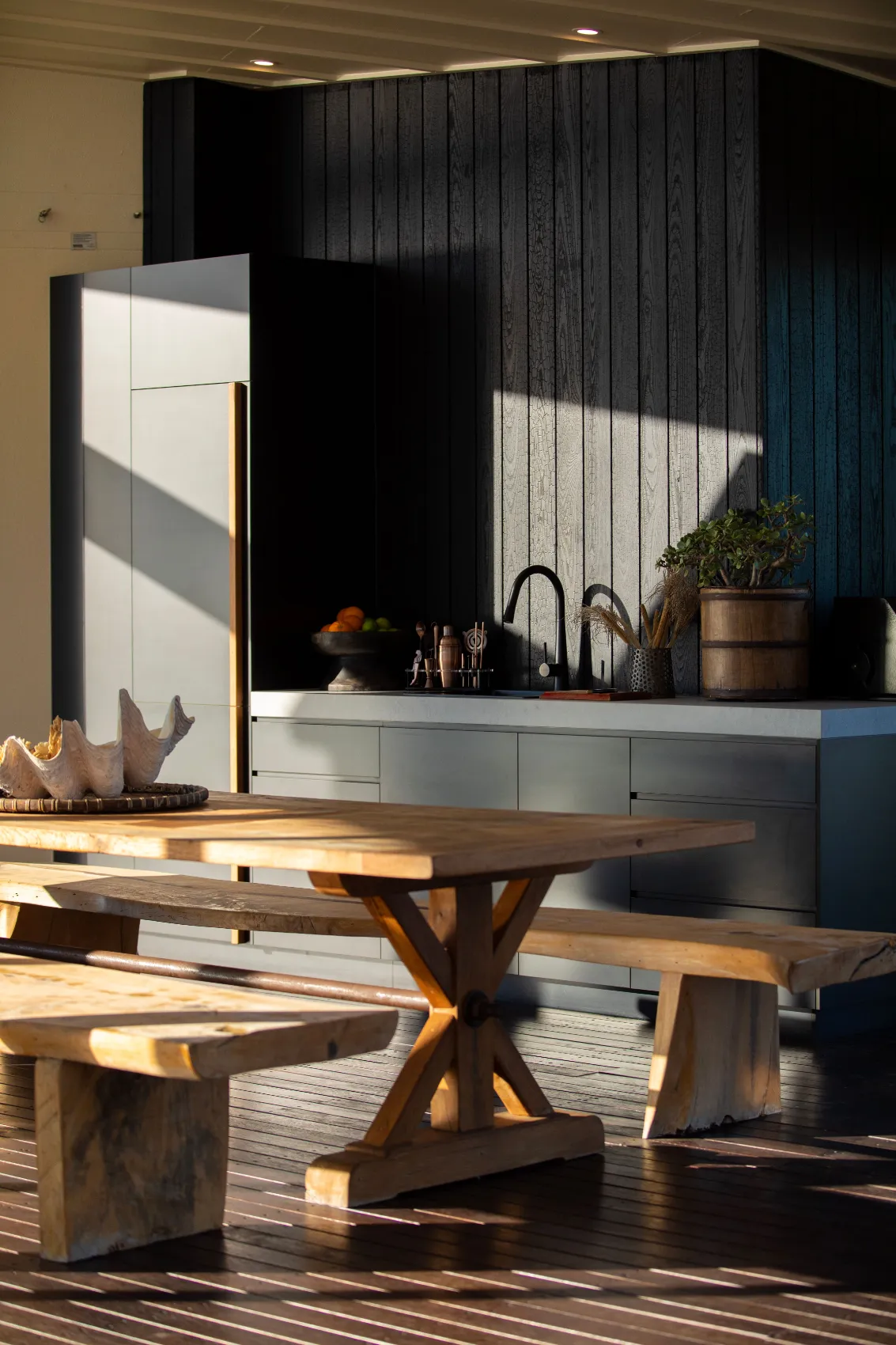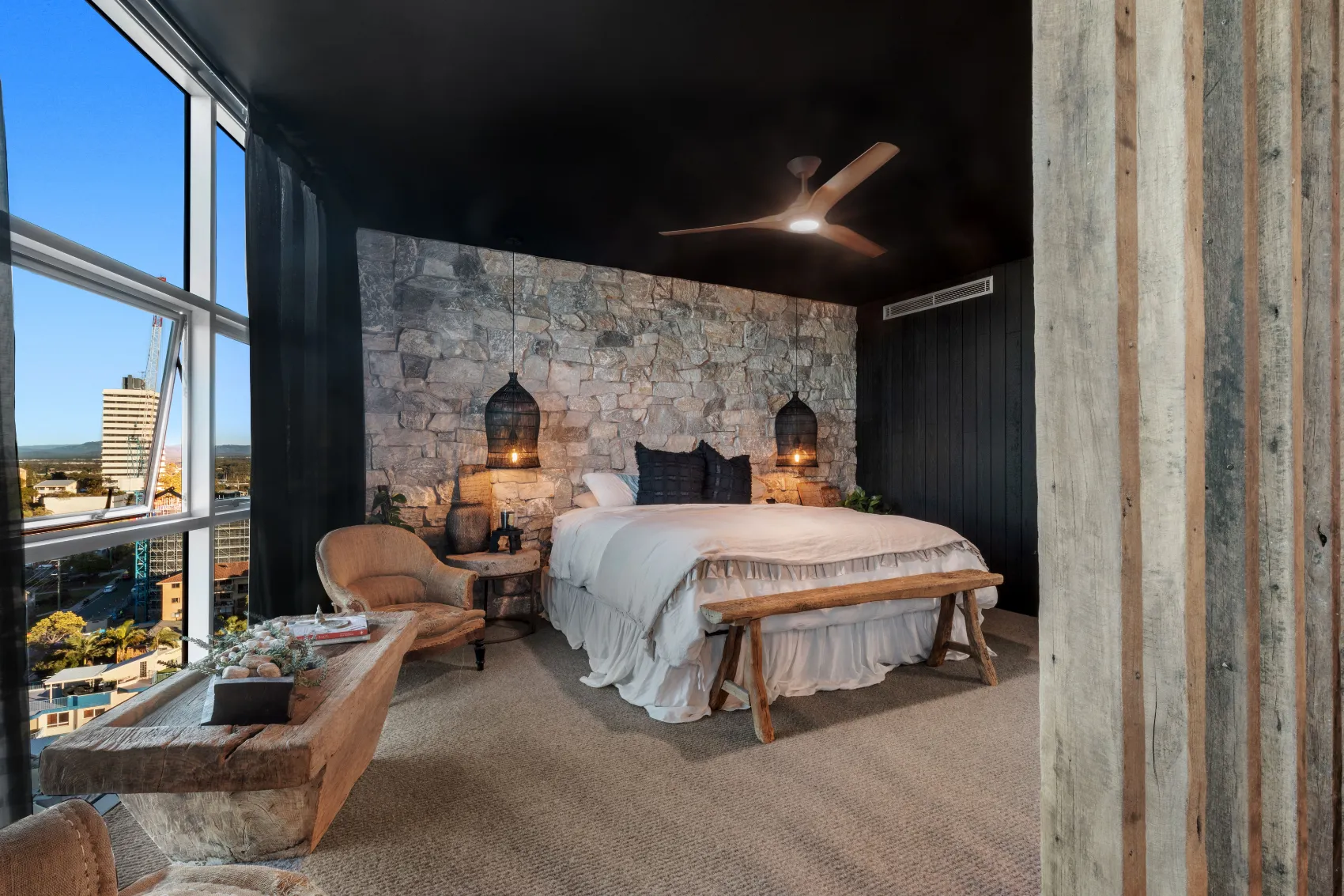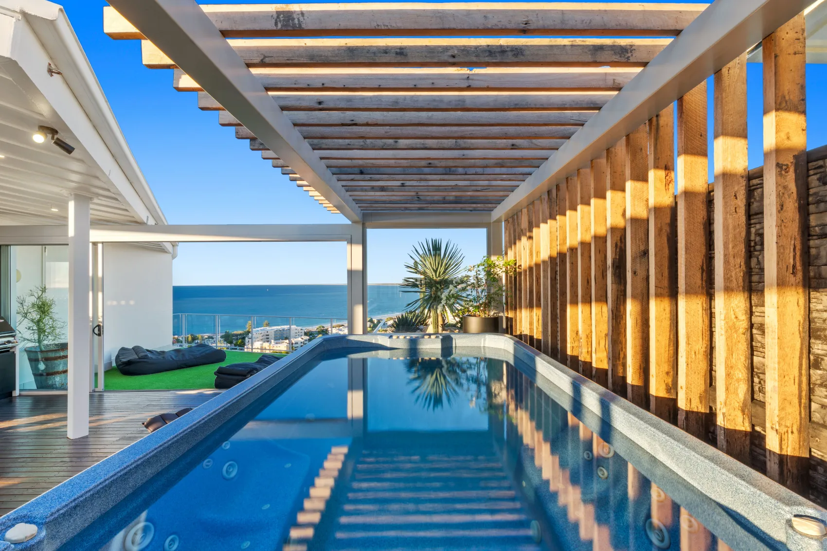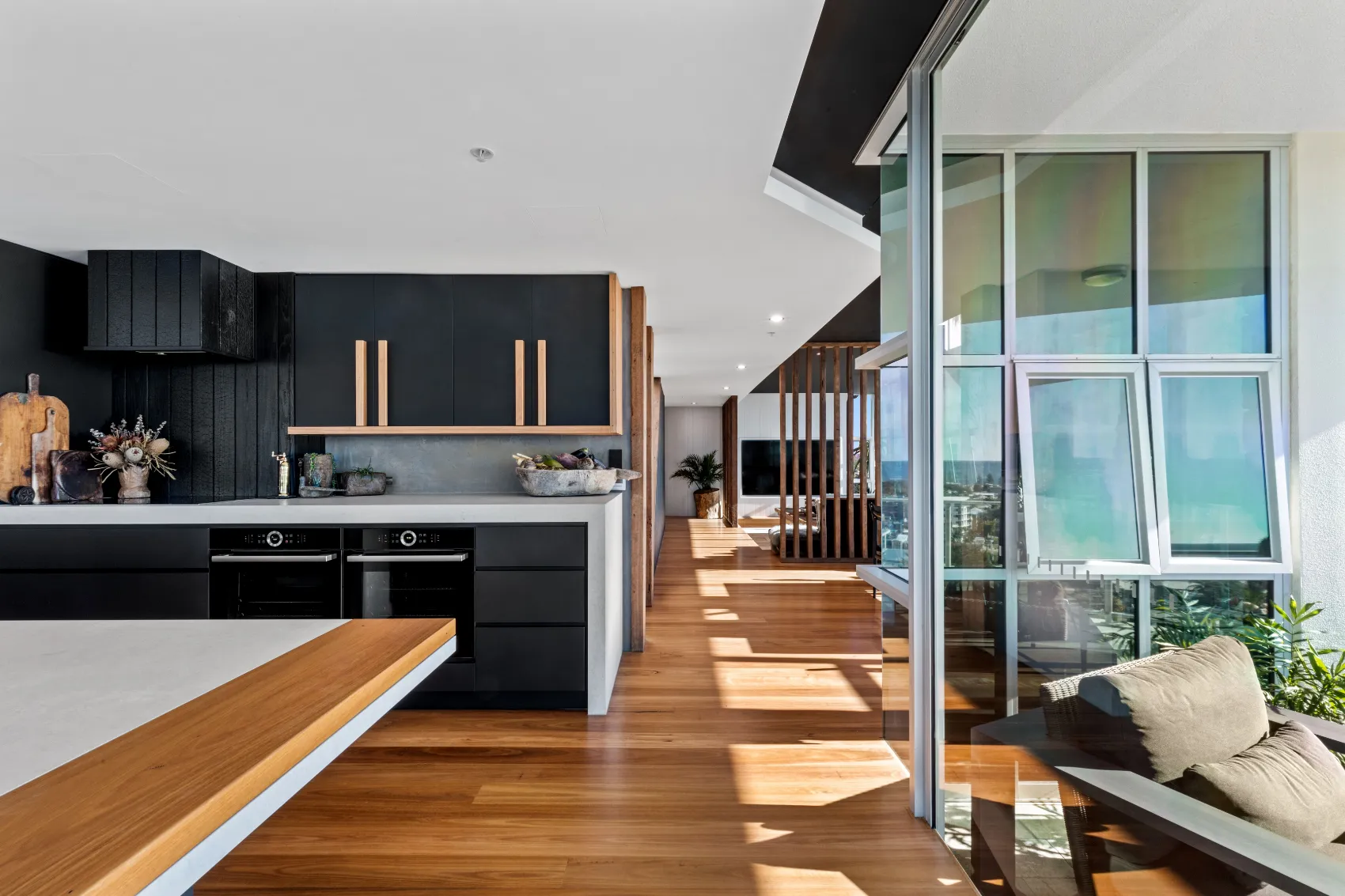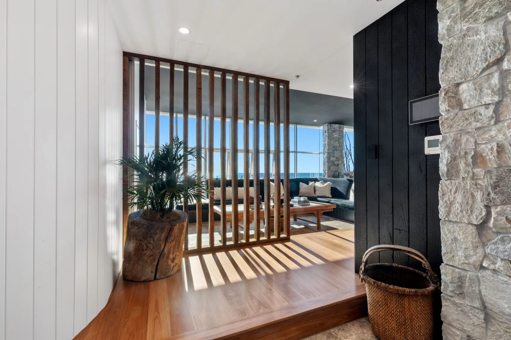 An 11th floor penthouse reimagined as a grand yet intimate coastal retreat. From the private lift entry, the space unfolds in layers — from recessed dining areas to an expansive rooftop terrace. Multiple outdoor zones offer places to gather, unwind and take in the view, with a strong connection between interior and sky. Every element is designed to frame the horizon and create a sense of calm above the city.